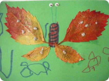 5) Quand la colle est séche, faites lui dessiner des feuilles d'automne autour du papillon